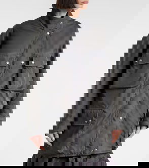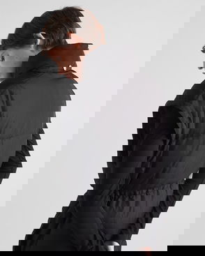 Fashion meets function in this black Prada coat, which is crafted from sustainable Re-Nylon and padded with a warm down feather-blend. It comes in an oversized fit featuring dropped shoulders and wide lapels, and is accented by an adjustable buckled waist belt, large pockets and the label's signature triangle emblem at the chest.