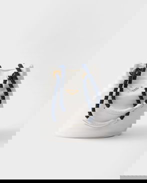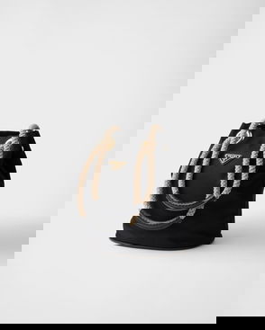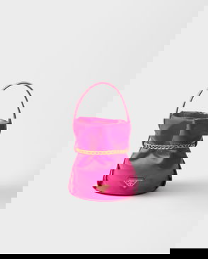 The Prada Petit Sac bucket bag from Prada adds a touch of sophistication to any ensemble. Crafted from the brand's signature Re-Nylon and trimmed with leather, the style is accented with a gold-toned chain and a spherical pendant.