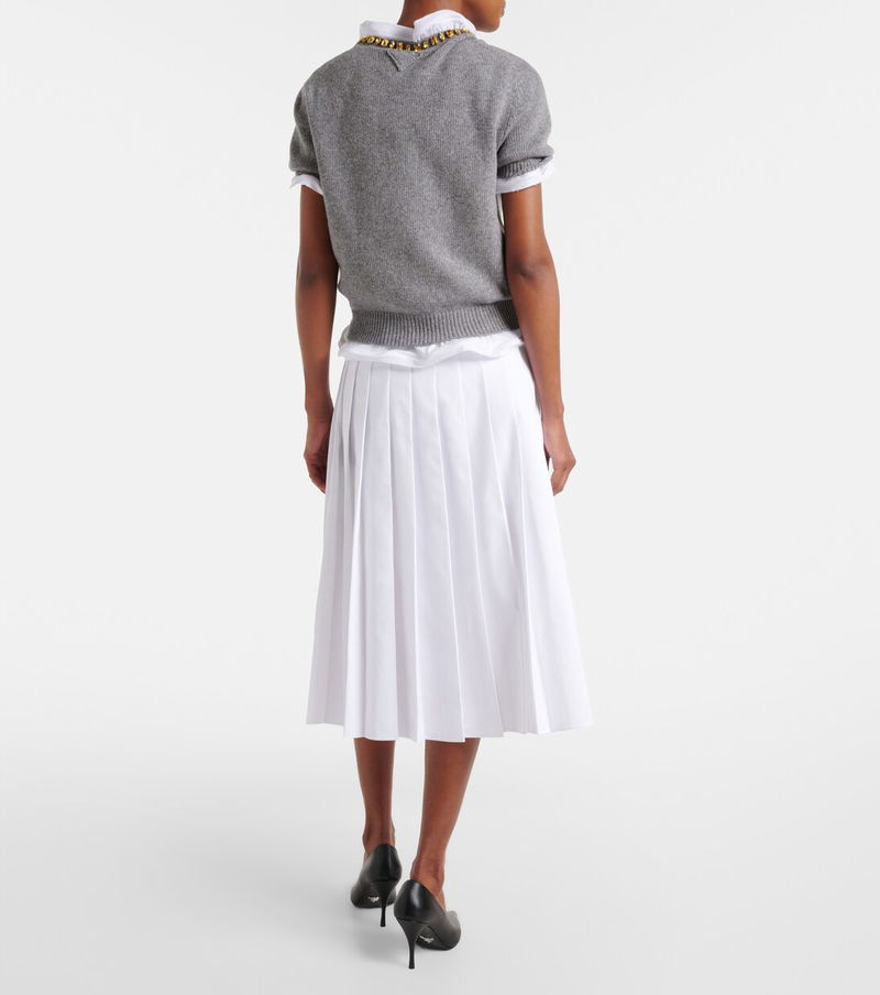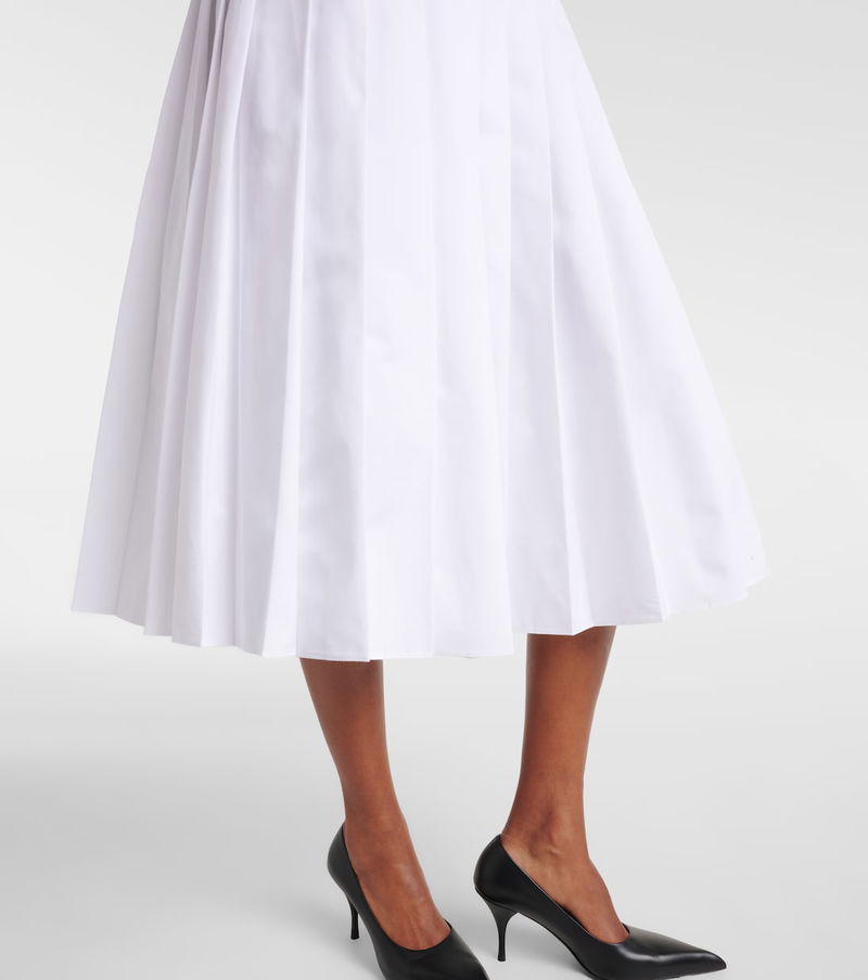 Prada has been synonymous with cutting-edge style since 1913. Inspired by classic tennis styles, this midi skirt is crafted from pure cotton and features a pleated silhouette and contrast trims.
