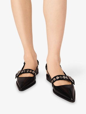 Miuccia Prada's future-facing elegance, honed since she joined her grandfather's house in 1978, is encapsulated by these silver slingback flats. They're crafted in Italy from high-shine metallic leather with a point toe which is echoed by the pointed vamp – note the graphic logo-print strap running across it. Wear them beneath monochrome edits for a polished look.