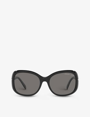 This pair of square-shaped sunglasses by Prada is designed to suit a round-shaped face.The polycarbonate lenses are lightweight and impact resistant for comfortable all-day wear. The lenses are fitted with a polarised filter to guard against reflection and glare.