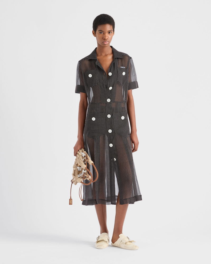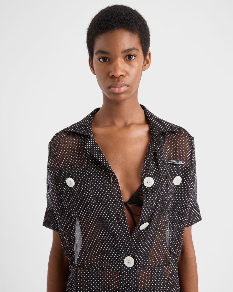 Polka-dot Silk Chiffon Shirt Dress