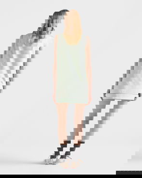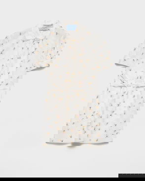 This cream shift dress has an oversized version of the new ruched-flower logo in lieu of Prada's traditional metal plaque – a new feature under the joint creative direction of Miuccia Prada and Raf Simons. It's made in Italy from polka-dot silk taffeta, printed with white figures and text across the front and back. Style it with the corresponding trousers to complete the runway look.