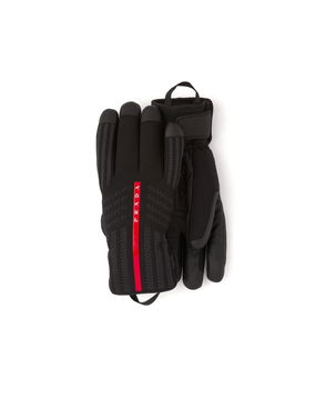 Prada leather gloves. Zipped pouch, tonal logo plaque.
