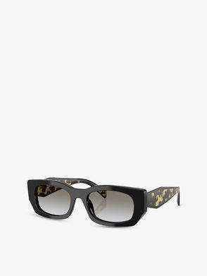 Prada acetate sunglasses. 100% UV-protected lens, logo branded sides, silver-tone hardware, tortoiseshell frame.