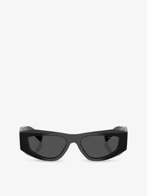 Prada acetate sunglasses. 100% UV-protected lens, logo branded sides, gold tone hardware, tortoiseshell frame.