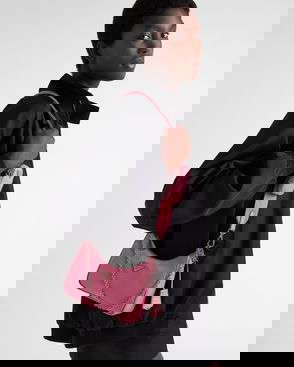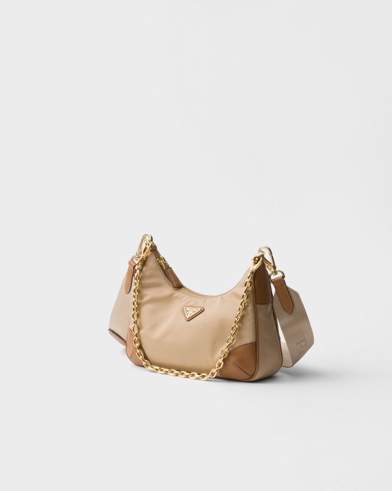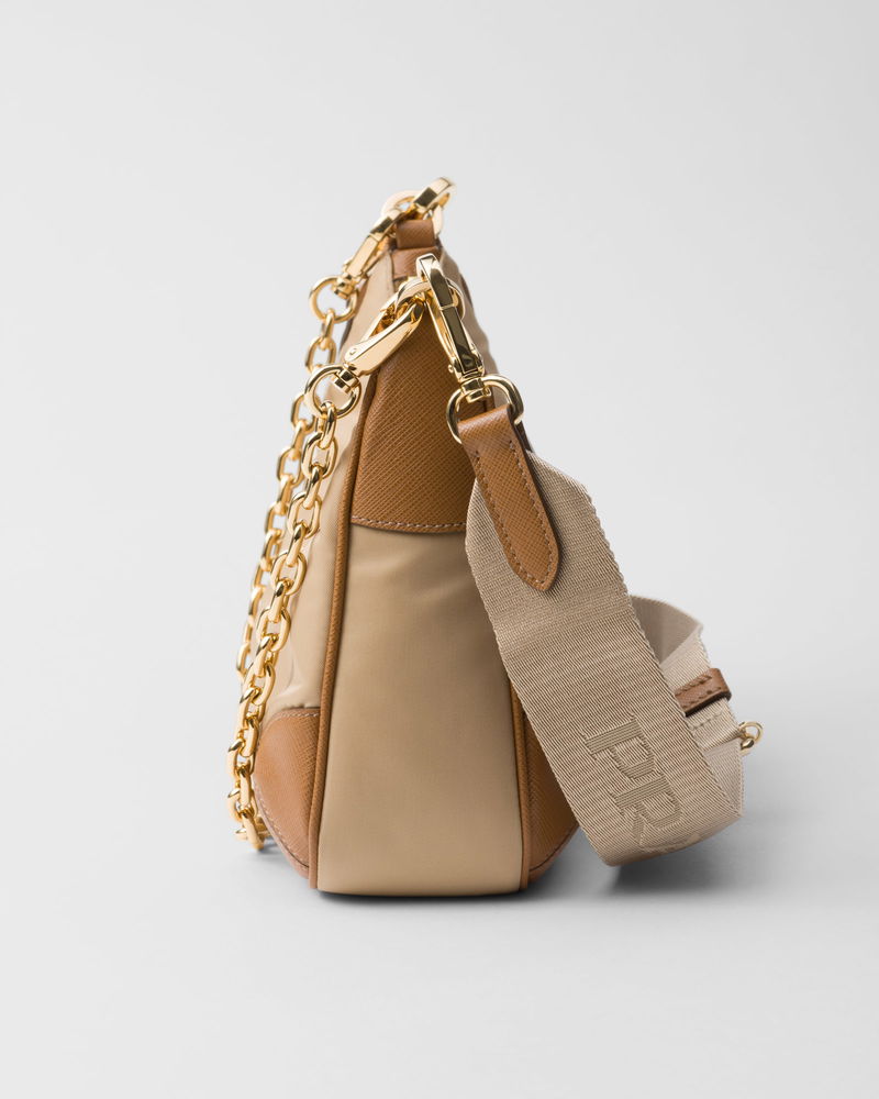 Re-edition 2005 re-nylon and saffiano leather bag with charm.