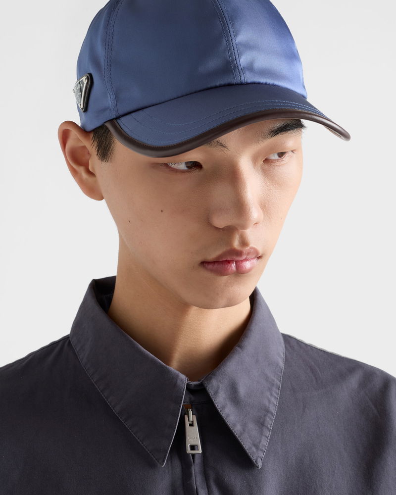 Re-Nylon And Leather Baseball Cap