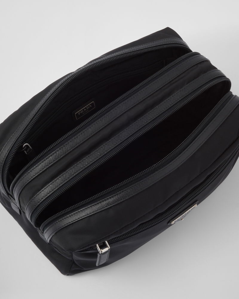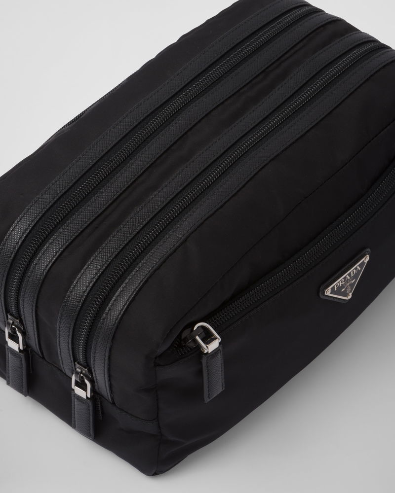 Re-Nylon And Saffiano Leather Travel Pouch