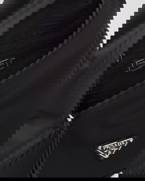 Prada's iconic triangular logo adorns this backpack. Made from the label's Re-Nylon fabric with leather trims, it has a single shoulder strap and a zipped top.
