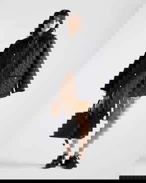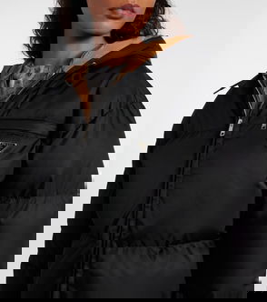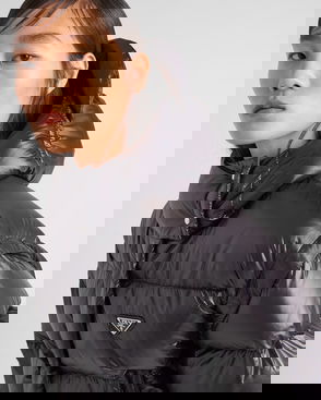 Offering a more sustainable take on a signature fabric, Prada’s Re-Nylon products are made from regenerated ocean plastic waste. The signature fabric is used to create this down jacket, cut to a cropped silhouette and complete with silver-toned hardware.