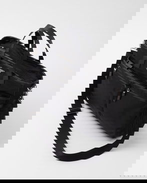 With an adjustable strap and small logo pouch, this black Prada bag is crafted from Re-Nylon, featuring a zipped top closure and triangle enamel logo on the front.