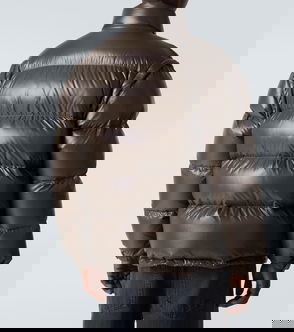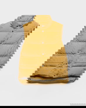 Offering a more sustainable take on a signature fabric, Prada’s Re-Nylon products are made from regenerated ocean plastic waste. This down vest showcases the same construction, complemented by a quilted finish and logo plaque on the chest.