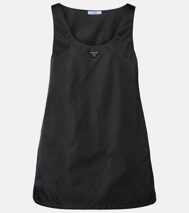 This Re-Nylon minidress features a scoop neckline, logo hardware, and drawstring hem. Offering a more sustainable take on a signature fabric, Prada’s Re-Nylon products are made from regenerated ocean plastic waste.