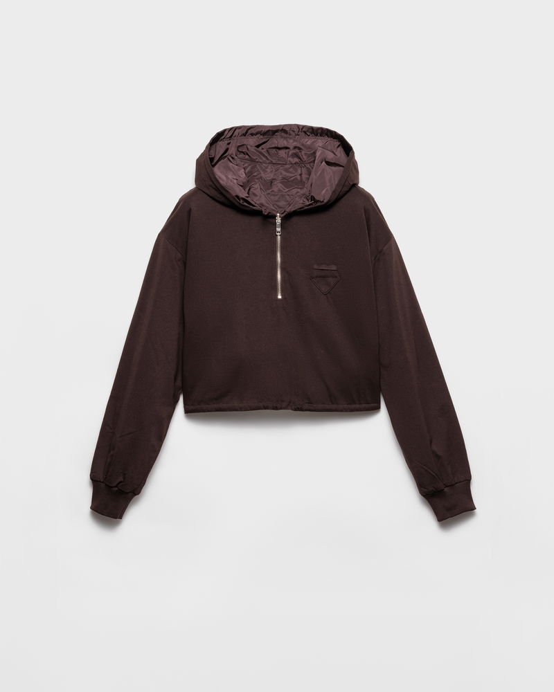 Reversible Cotton Jersey And Re-Nylon Hoodie