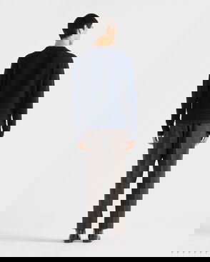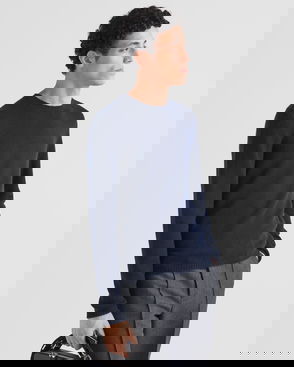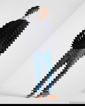 Ribbed-knit in Italy from soft, lightweight cashmere, this crewneck sweater by Prada offers effortless elegance and everyday comfort. This minimalist navy design is complete with the brand's iconic Triangle patch at the back.