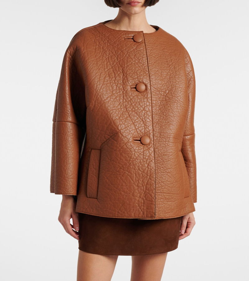 Prada embodies modern sophistication, blending timeless Italian craftsmanship with an innovative spirit. Crafted from soft nappa leather, this minimalist jacket features a rounded, oversized silhouette and a matching scarf.