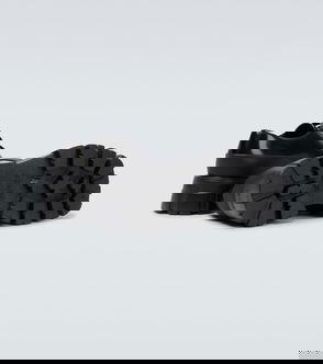 These Prada slippers are crafted in Italy from luxuriously soft shearling in black. They rest on cleated rubbers soles for added comfort, and feature the label's iconic triangle logo on the uppers.