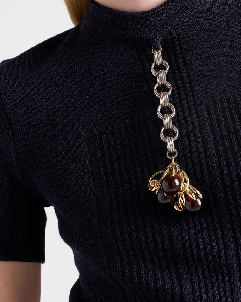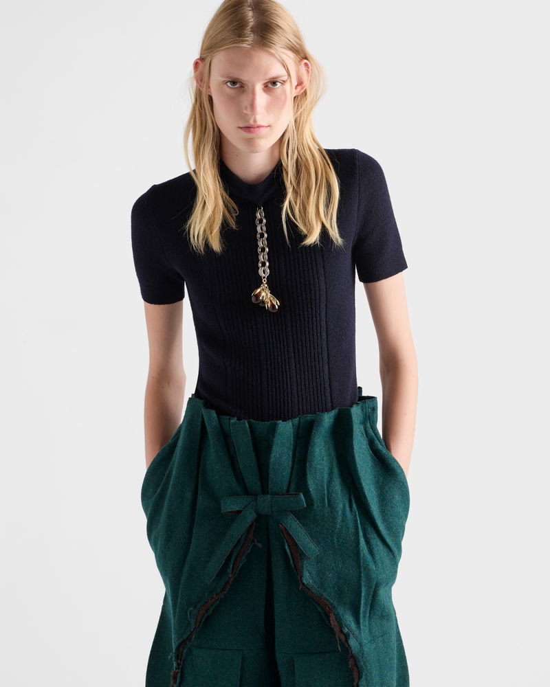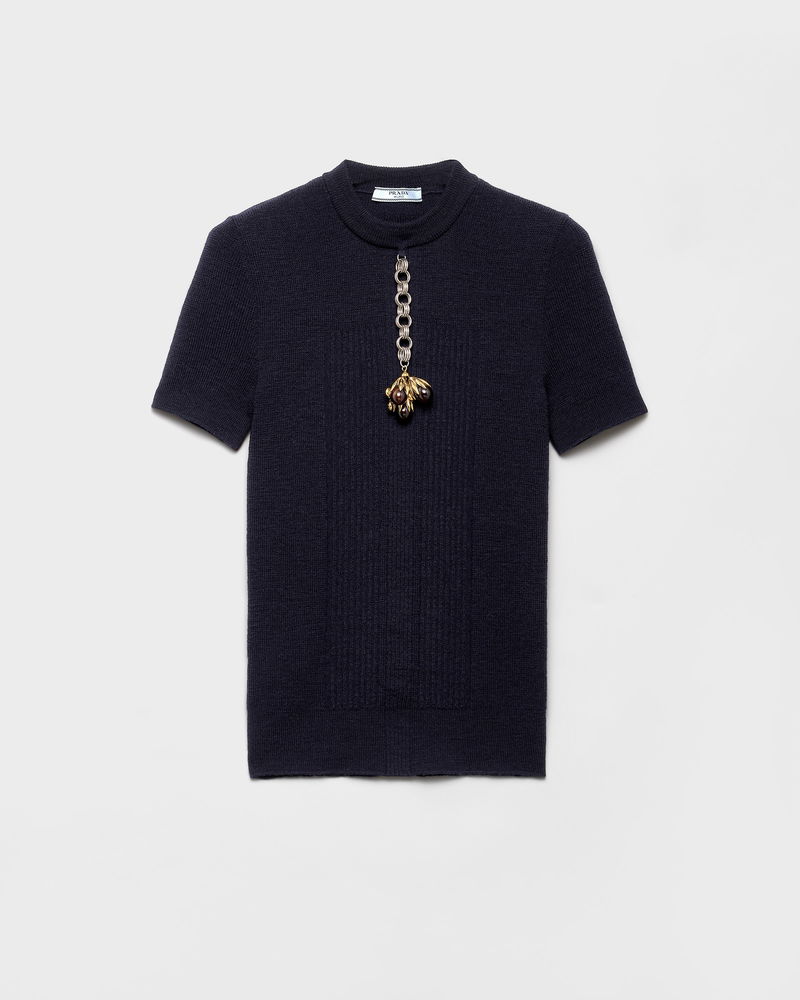 Short-sleeved Wool Sweater With Pendant