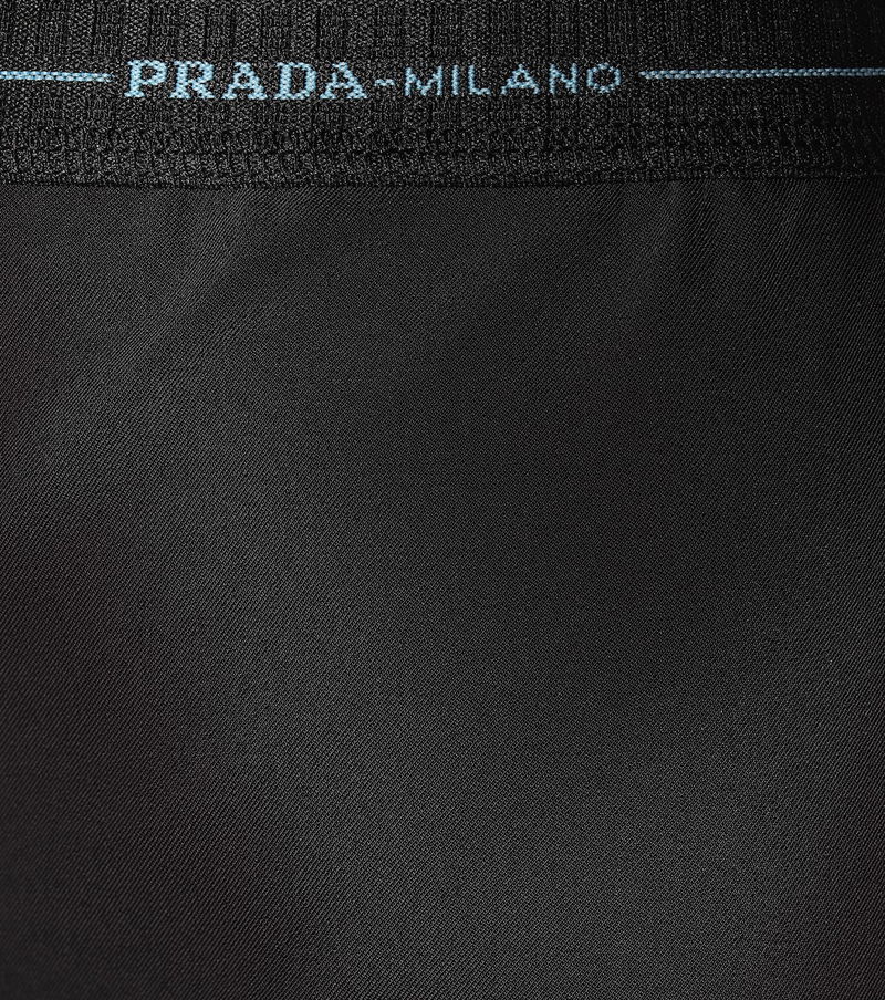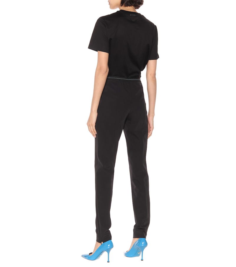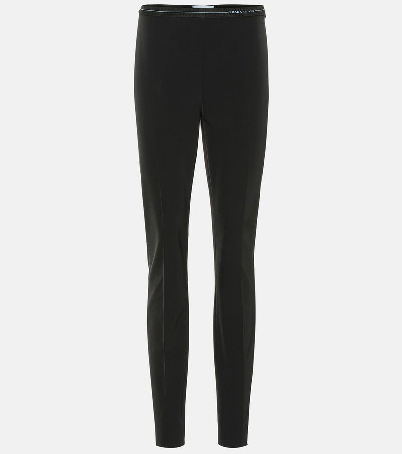 Crafted in Italy from a black technical stretch fabric, these pants from Prada offer a modern take on tailoring. They start at a logo-jacquard elastic waistband and fall into a skinny leg that tapers toward the ankle, which has zippers at the cuffs.