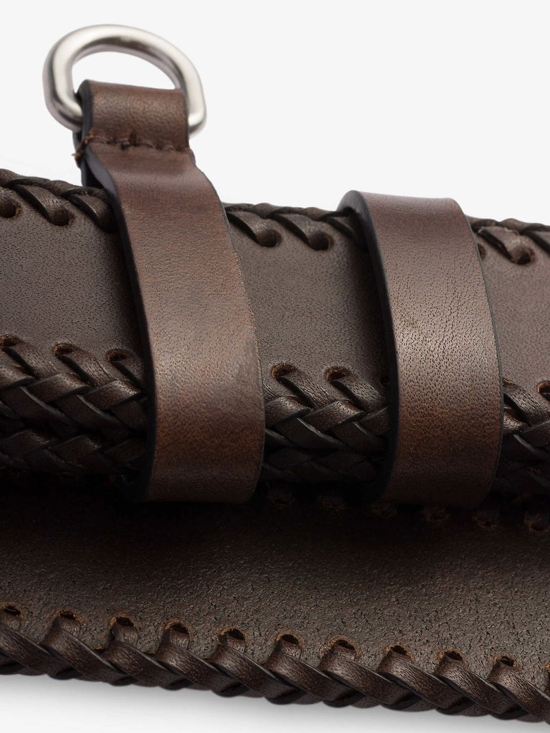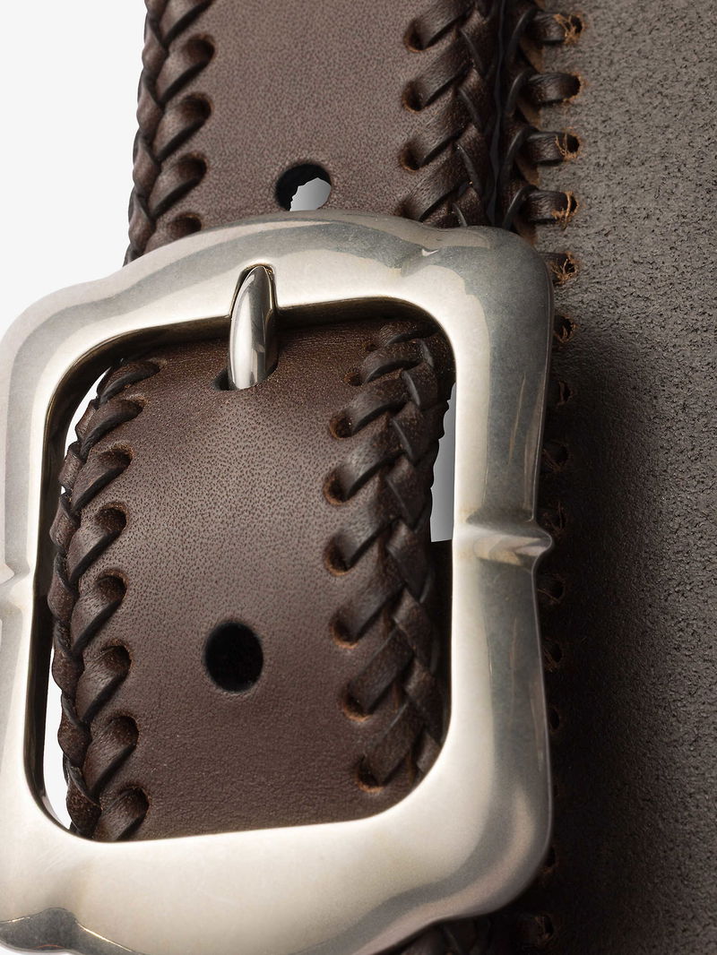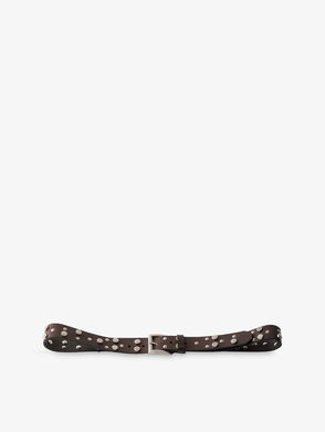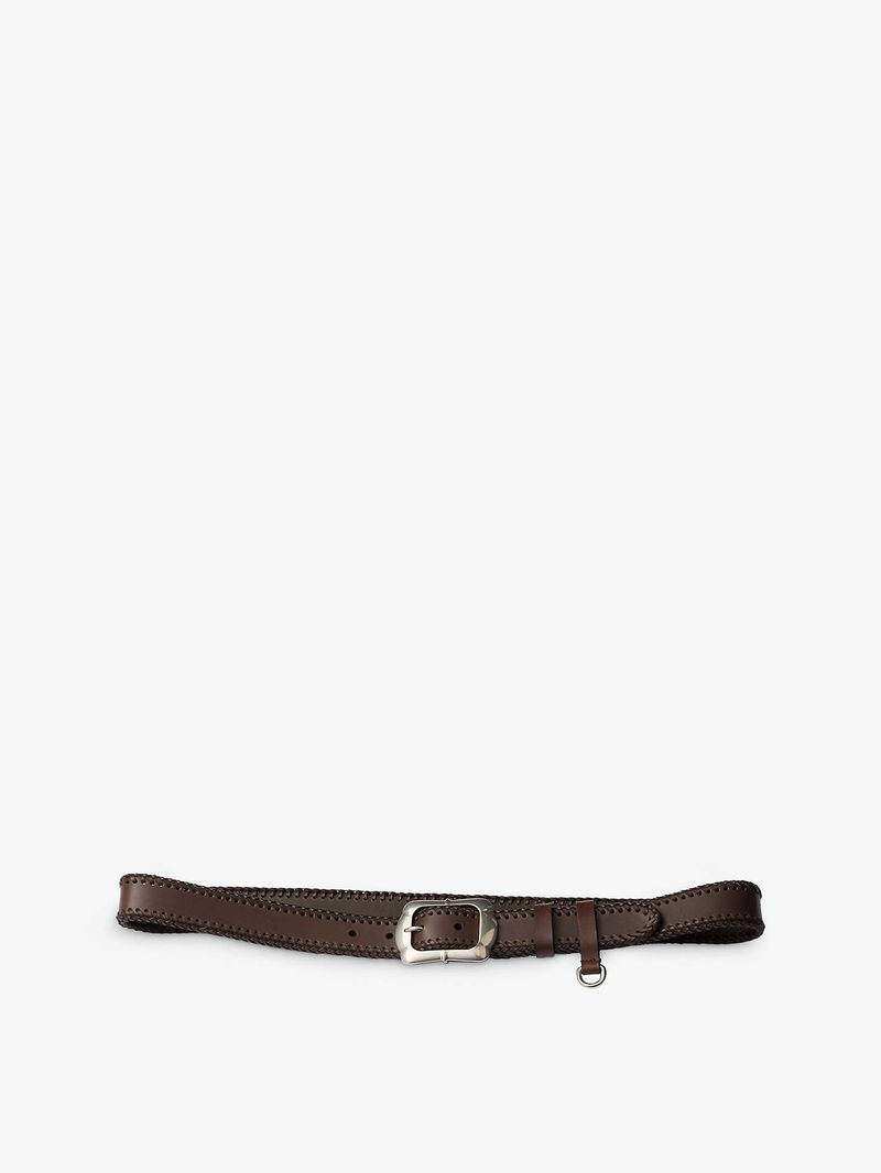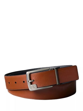 Prada leather belt. Slim shape, logo engraved buckle, polished hardware.