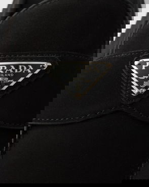 These Italian-made suede slippers have a classic slip-on silhouette and lightweight rubber soles. This piece features Prada's iconic triangular logo plaque, which embodies simplicity, elegance, and quality.