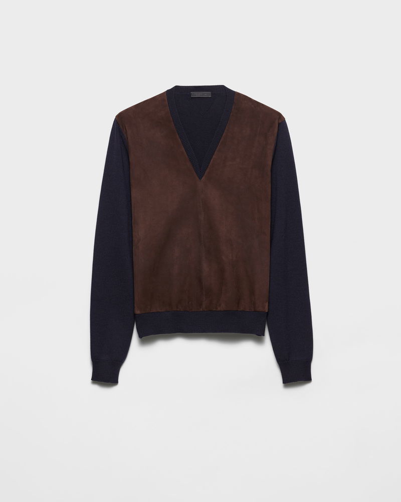 Superfine Wool And Suede Sweater