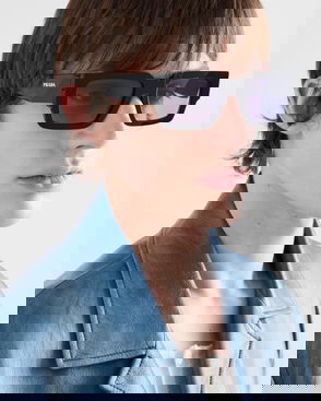 Prada's Symbole sunglasses spotlight the house's forward-thinking approach, with a rectangular frame that's made from a lightweight combination of layers of acetate. This style has 100% UVA/UVB protective lenses and geometric-molded logo plaque arms.