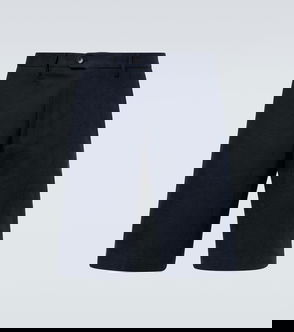 Made in Italy, these virgin wool poplin shorts from Prada are tailored in a bermuda silhouette in grey, feature single front pleats, and can be worn with a matching jacket.