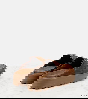 Prada taps the ongoing animal-print trend for Pre-AW19 with its brown and black tiger-print mules. They're made in Italy from calf hair with an elegant point toe that's offset with a V-shaped vamp and trimmed with black leather piping, then set on a squared kitten heel with a rounded tip. Slip them on with a tailored shirt dress for a sculptural workwear look.