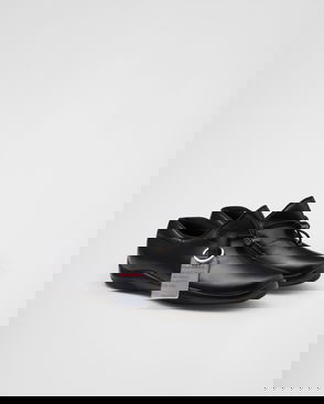 Prada takes Italian heritage into a distinctly modern direction with a streamlined and fashion-forward approach. The Toblach penny loafers feature the classic leather construction and sneaker-inspired rubber soles.