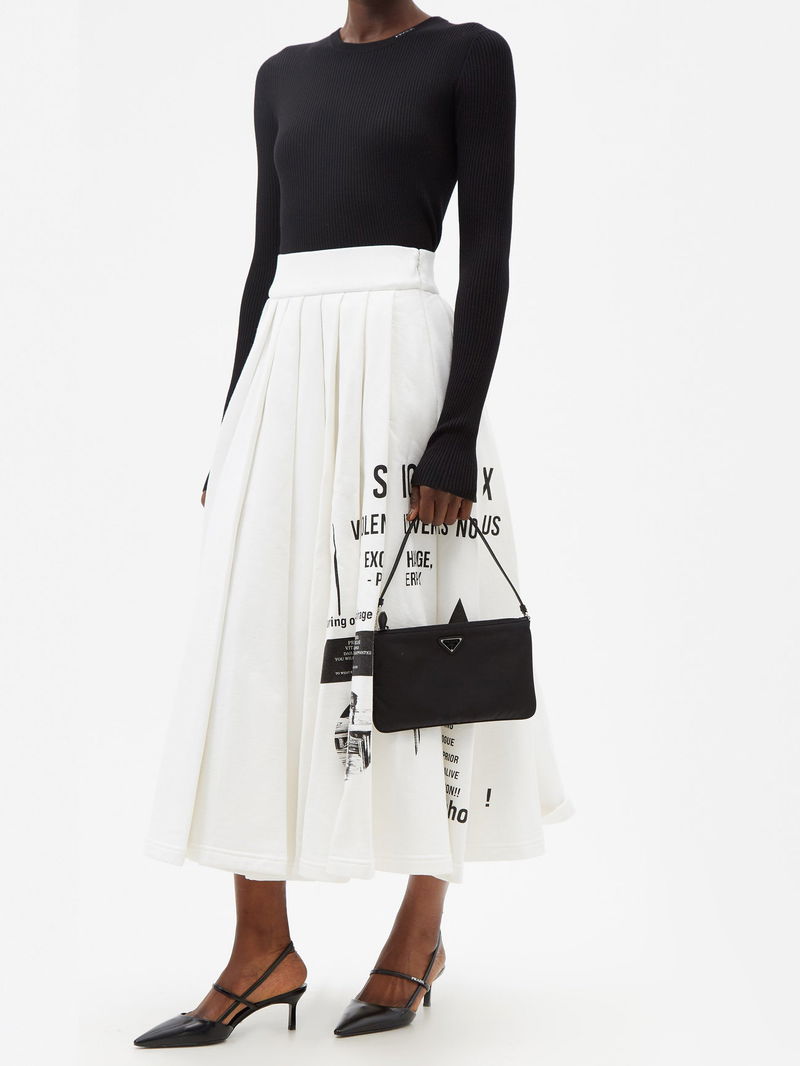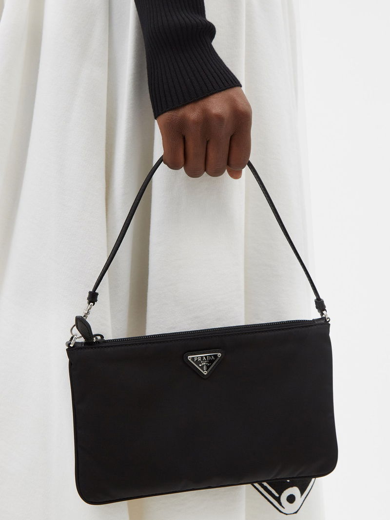 Prada’s classic black shoulder bag is updated in recycled nylon, referencing the Italian house’s commitment to sustainable production by 2022.