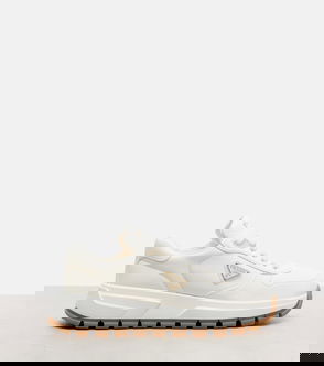 Prada’s white gabardine high-top trainers feature a rubber toecap reminiscent of tyres, which reflects the house’s unconventional spin on athleisure codes. Made in Italy, they’re printed with a black triangular logo and framed with beige trims, then lined with a leather insole. Wear them to ground skirts and dresses in the warmer months.