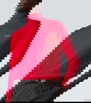 A runway piece, this long-length sweater from Prada is detailed with an all-over geometric jacquard pattern. In a long-sleeved silhouette, this bold piece from the new collection is Italian-crafted entirely from wool.