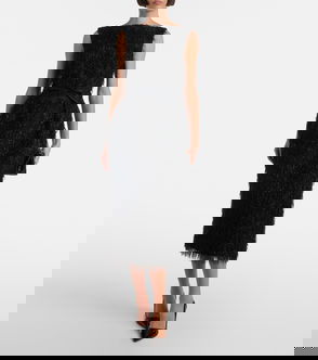 The contemporary minimalism exuded by this cream midi dress has earned Proenza Schouler awards from the Council of Fashion Designers of America, Vogue and Swarovski. It has a high neckline, cropped sleeves and midi hem which are woven with scintillating Lurex stripes for understated glamor.