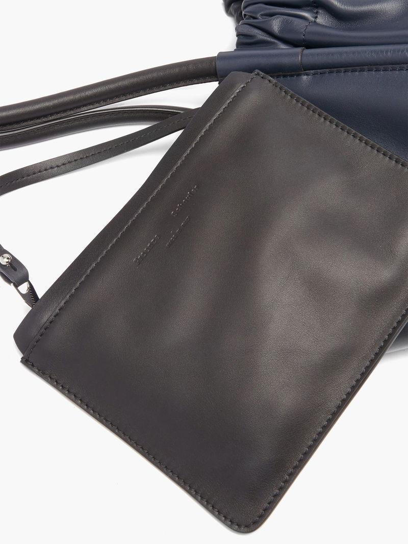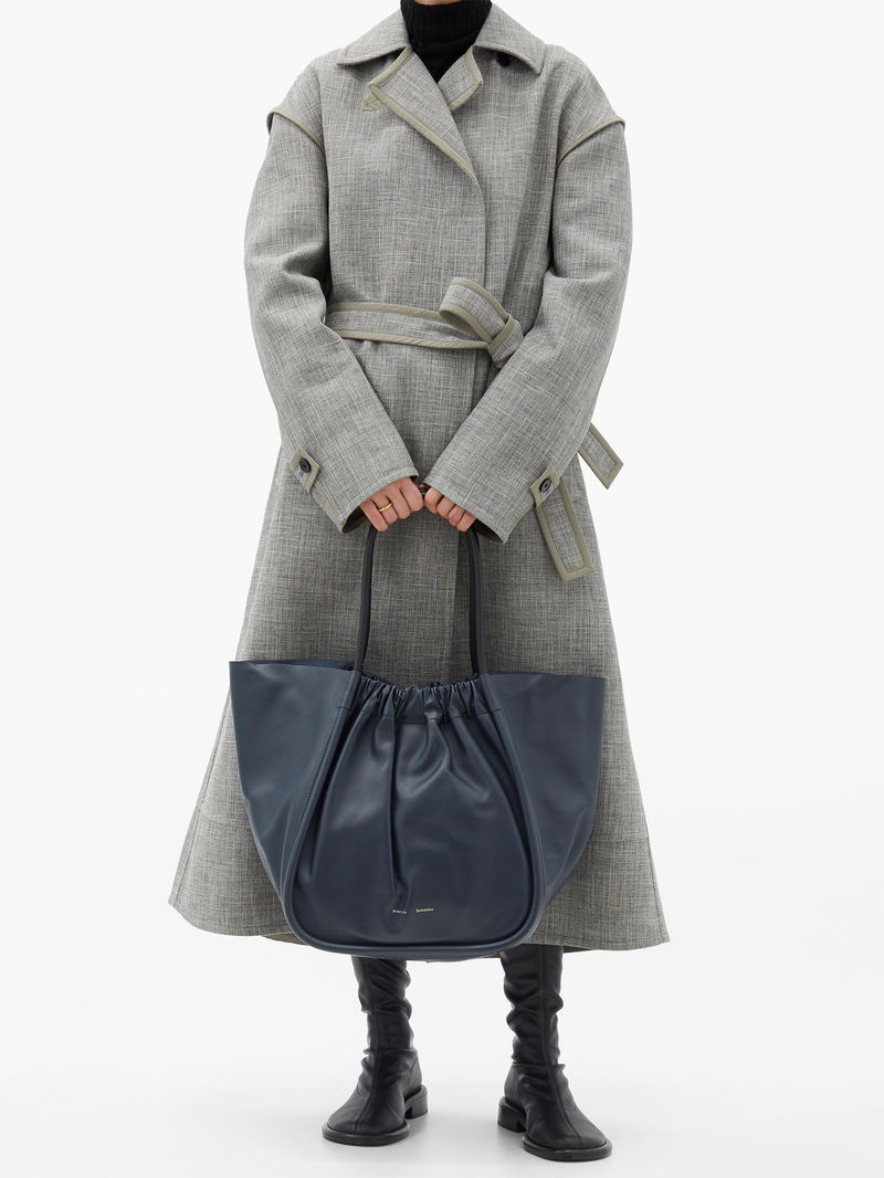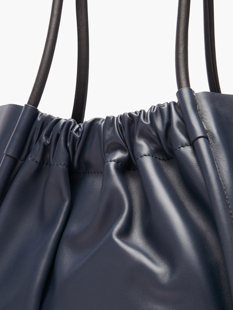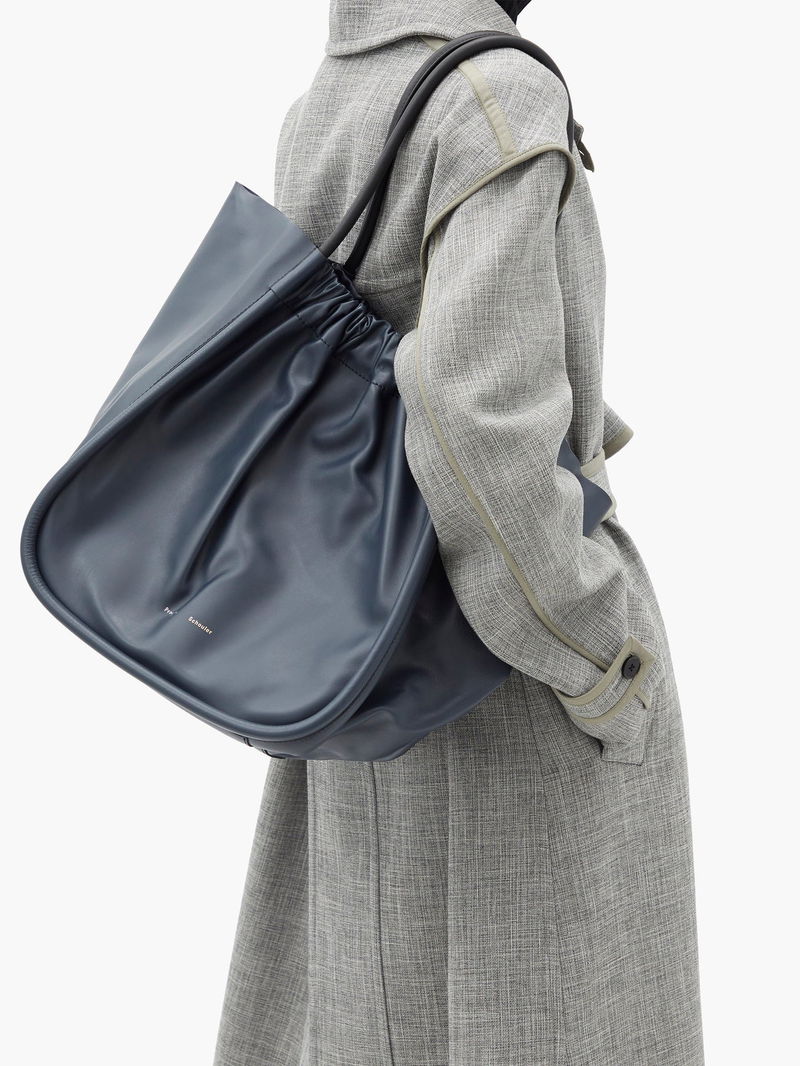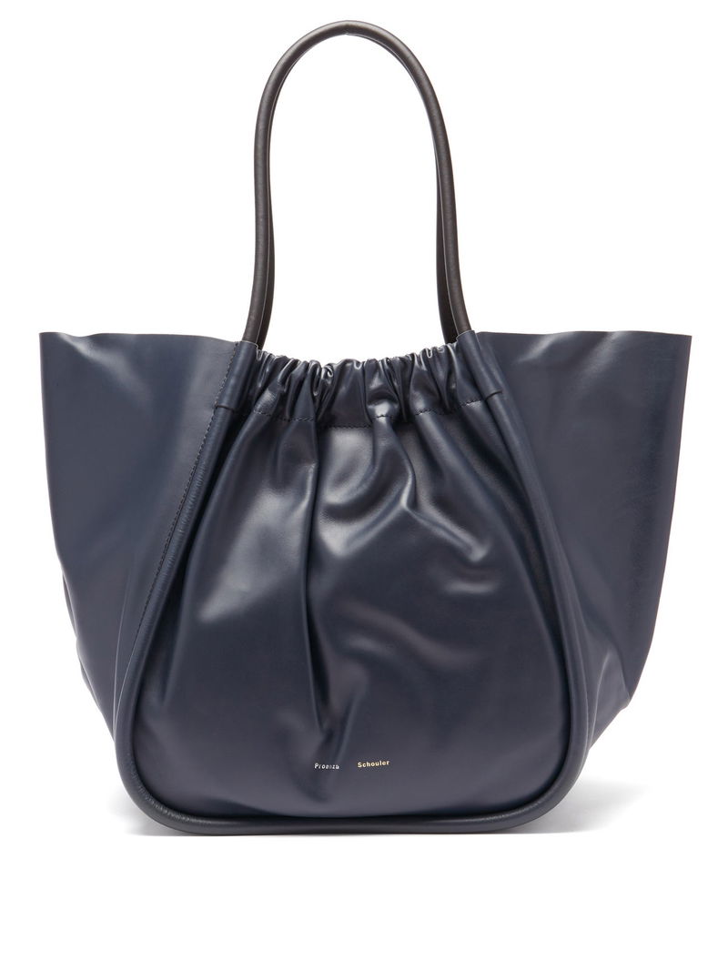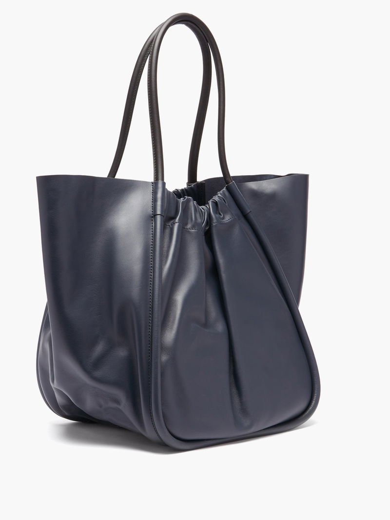 The oversized silhouette of Proenza Schouler’s navy Ruched XL tote is heightened through the exaggerated namesake gathered top edge. Made in Italy, it's crafted from smooth leather with a curved based and a two-tone hot-stamped logo, then finished with black rolled top handles accompanied by an internal leather zipped pouch.