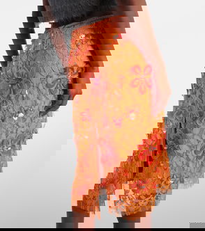 Hawaii Asymmetric Silk Satin Midi Skirt
