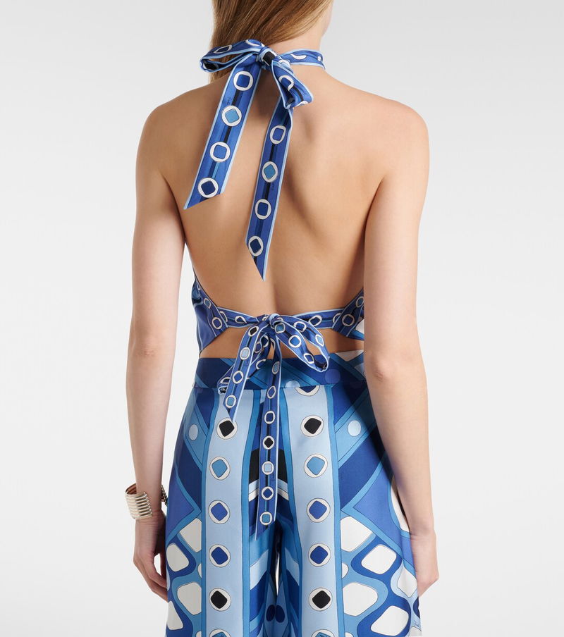 The iconic psychedelic swirling motif is a brand signature, which earned Pucci the title "Prince of Prints". Crafted in Italy from silk satin, this top boasts a sleeveless, low-back design with a slightly cropped length, self-tie neckline, and vibrant all-over print.