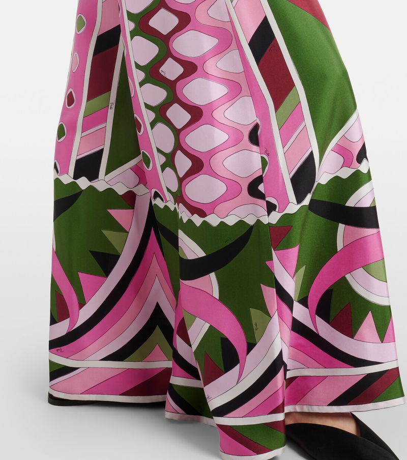 The iconic psychedelic swirling motif is a brand signature, which earned Pucci the title "Prince of Prints". Crafted in Italy from silk satin, these pants are shaped to a flowing, wide-leg silhouette with a high-rise waistband and vibrant all-over Vivara print.