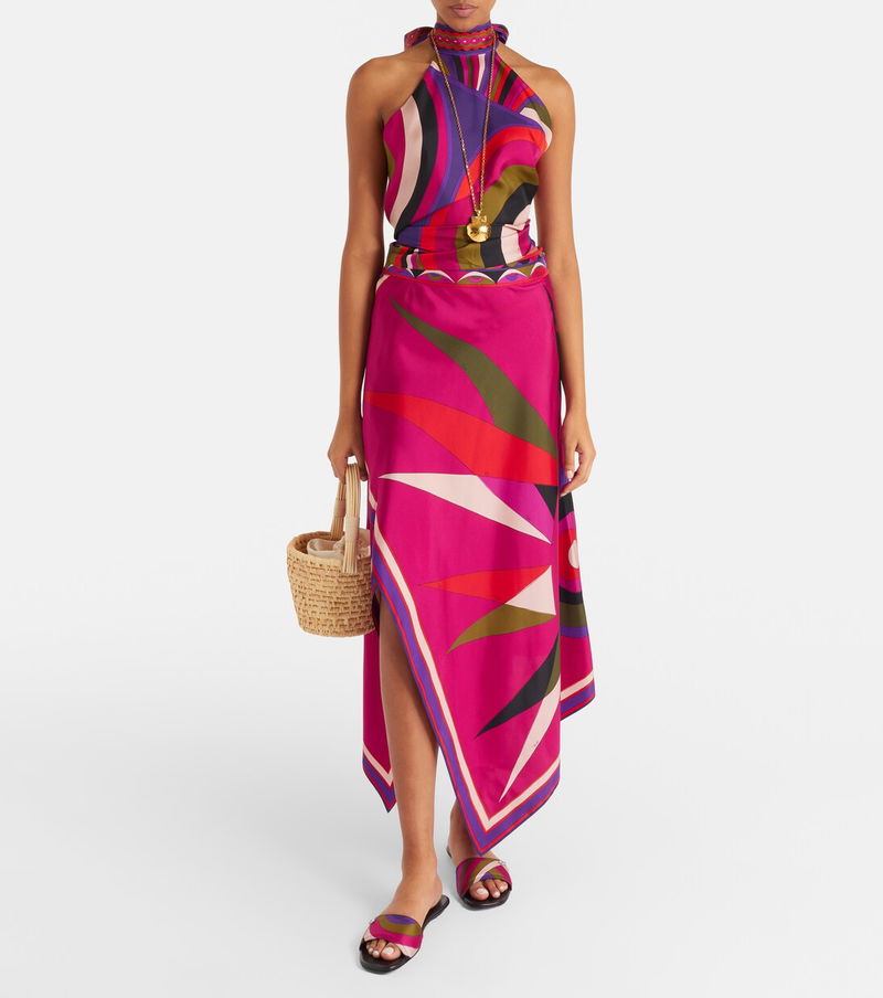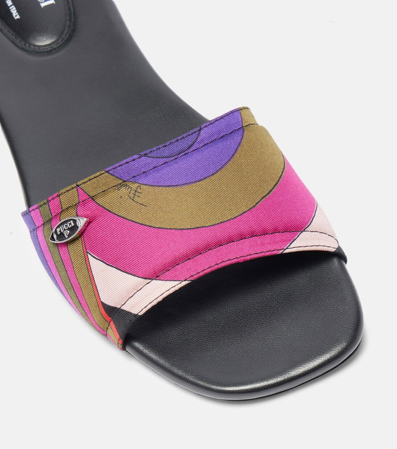 Featuring a vibrant Iride motif, the Yummi slides are a minimalist design crafted from silk twill and leather. The iconic psychedelic swirling motif is a brand signature, which earned Pucci the title "Prince of Prints".