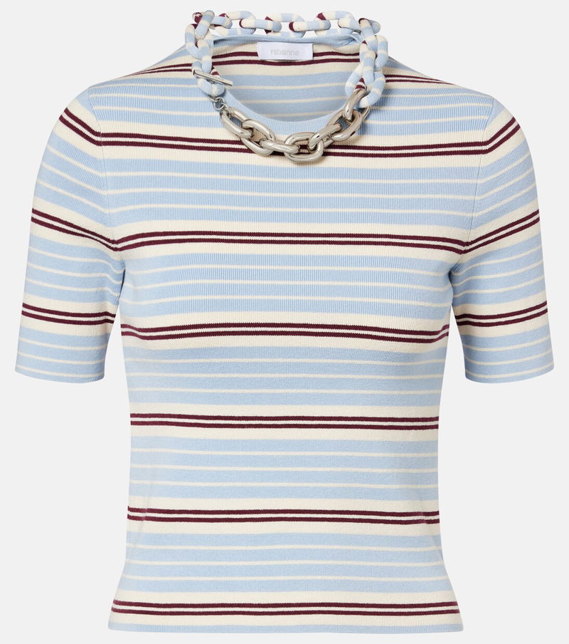 Rabanne’s innovative spirit continues to break boundaries. This ribbed-knit top is crafted from a silk and cotton-blend and features an all-over striped motif, completed with the XL signature necklace in silver-tone.