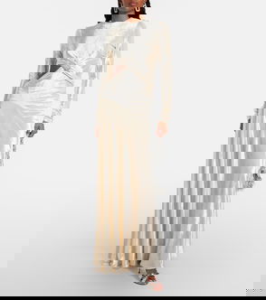 Embellished Gathered Satin Maxi Dress