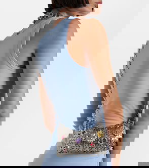 Celebrated for creating glamorous designs with unexpected materials, Rabanne’s innovative spirit continues to break boundaries. Complete with the brand's iconic 1969 discs, the Judy Blane shoulder bag is a silver-toned piece with crystal embellishments and dangling chain details.