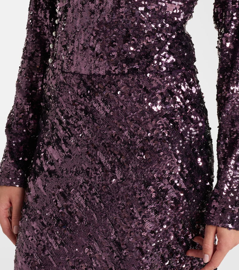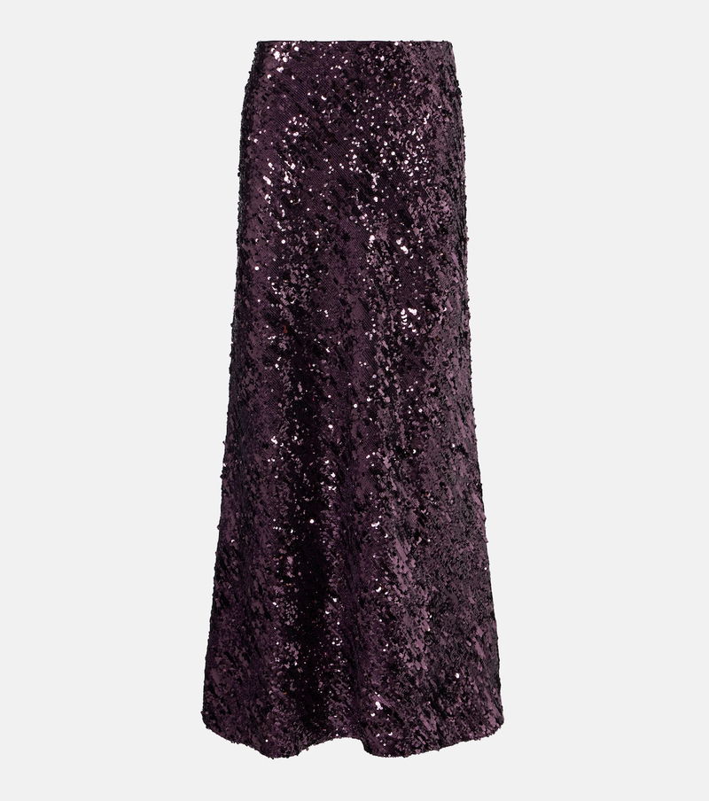 Celebrated for creating glamorous designs with unexpected materials, Rabanne’s innovative spirit continues to break boundaries. This maxi skirt is characterized by its all-over, deep purple-hued sequins.