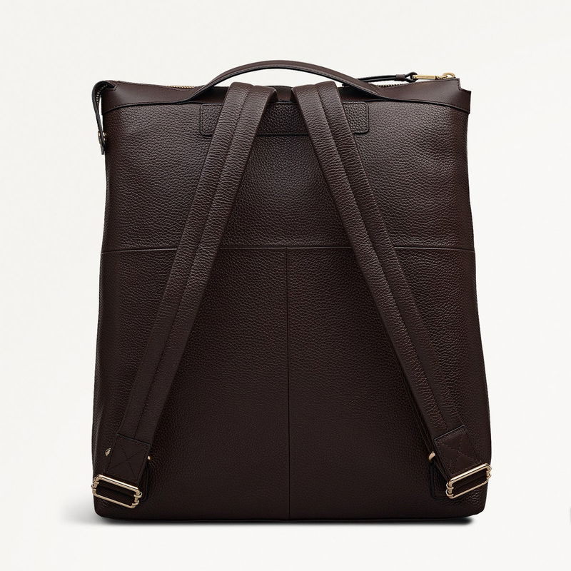 Alba Place Leather Large Ziptop Backpack In Dark Oak