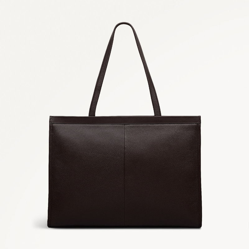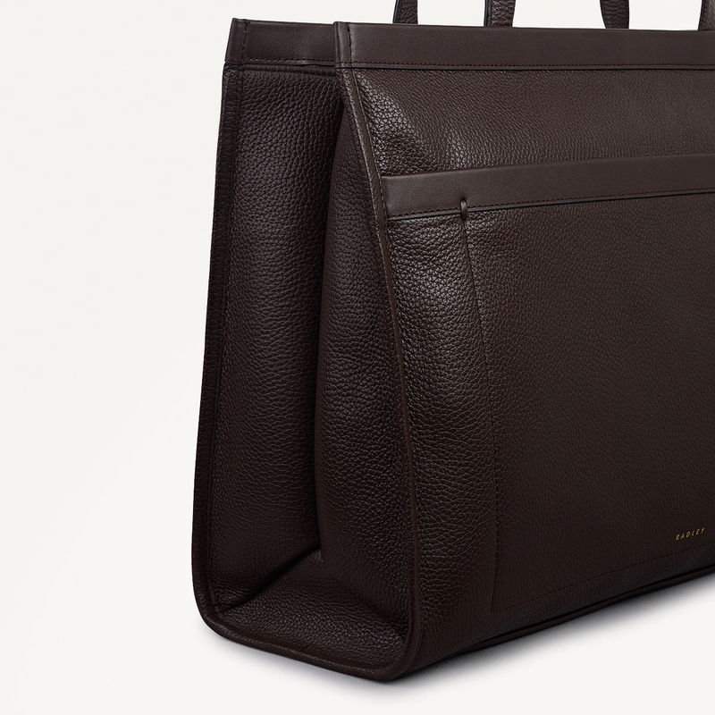 Alba Place Leather Large Ziptop Workbag Bag In Dark Oak