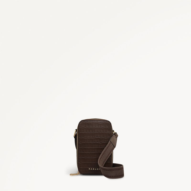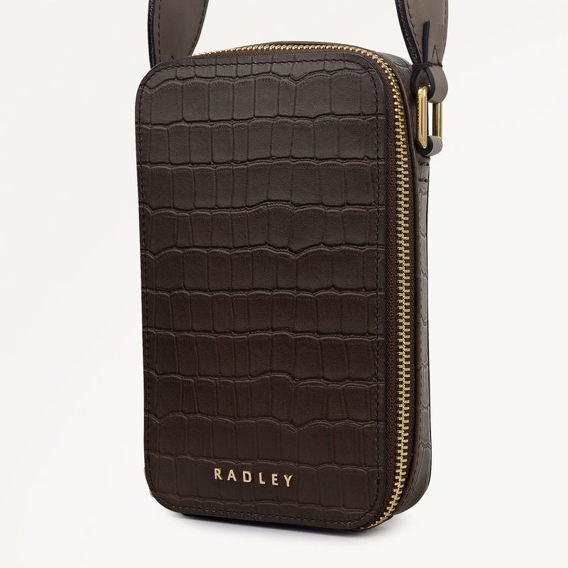 Alba Place Leather Medium Phone Cross Body Bag In Coffee