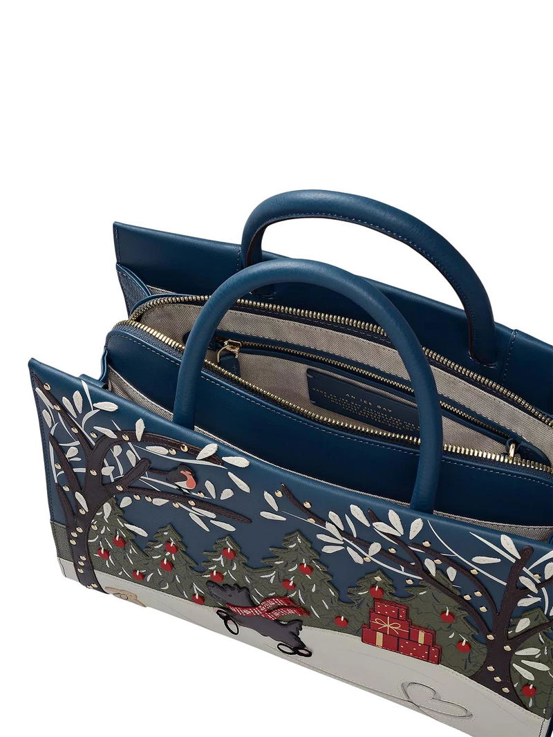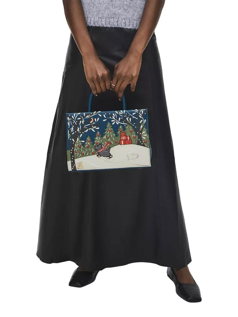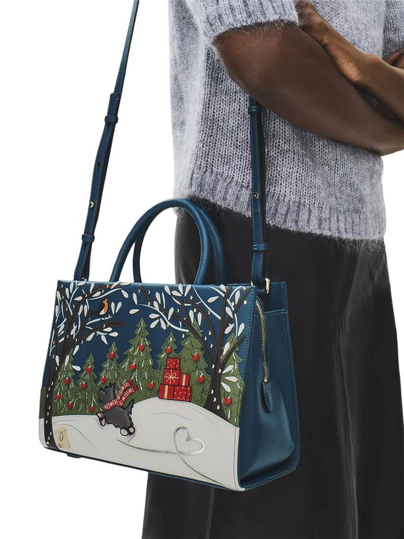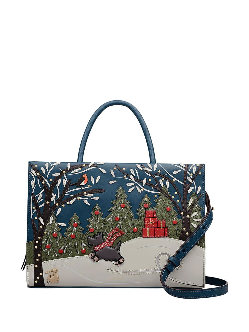 An ice-skating Scottie dog is just one of the intricately crafted elements on Radley's Christmas picture bag.