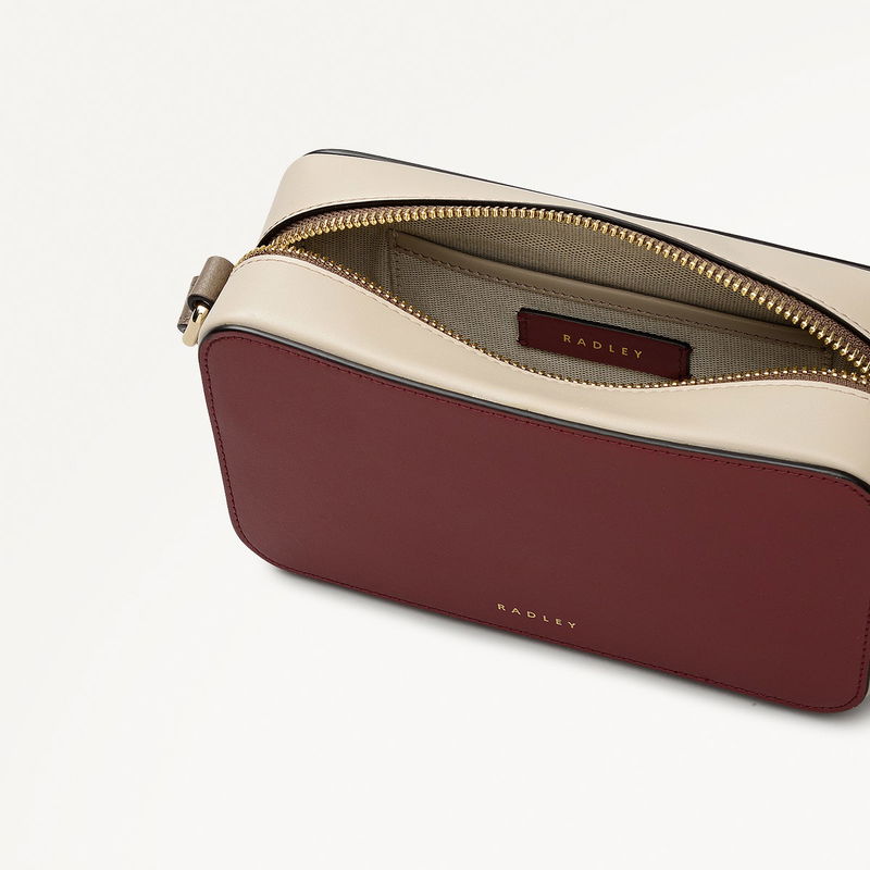Beech Row is the latest interpretation of a camera bag. This colorblock boxy shape is made with a combination of smooth leather and grain leather trims, including the adjustable strap and a long, knotted leather zip puller.