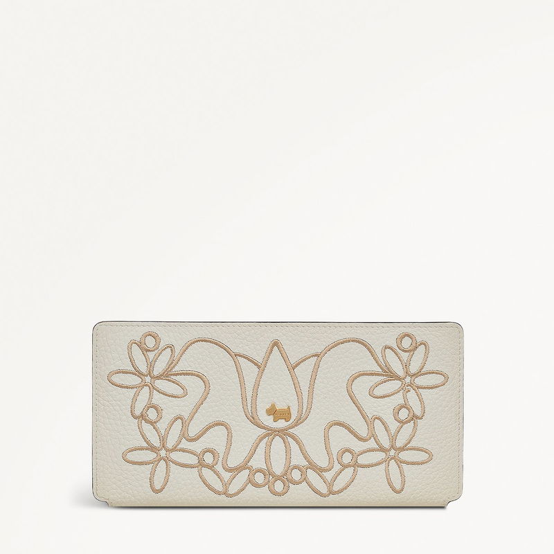 Delicate florals bloom across our Coin Street purse, an everyday style that combines practicality with luxury. The ribbon-inspired patterning is embroidered across the grained leather of this large bifold shape, while signature interiors continue to offer full functionality.